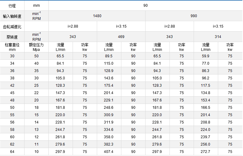 表中技術(shù)參數(shù)作為選型參考,每個品種的泵都裝有安全調(diào)壓閥,泵的壓力可任意調(diào)節(jié)。